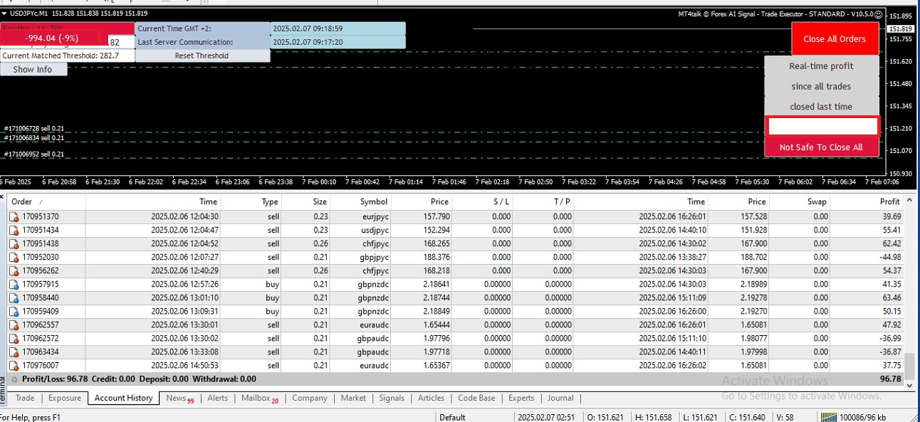 winning day, Using the MT4Talk Forex AI Signals EA v 10.5.0